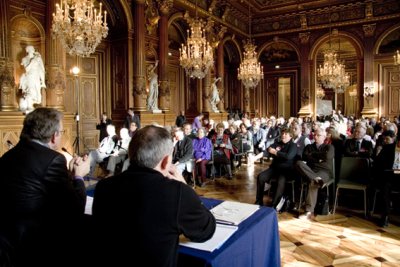 Après avoir été reçus par Catherine VIEU-CHARIER Adjointe au Maire de Paris chargée de la mémoire et du monde combattant, Odette NILES, Présidente de l’Amicale et Hubert DOUCET, Secrétaire, donnent la parole à Bernard THIBAULT et Pierre LAURENT, Secrétaires respectifs de la CGT et du PCF pour ouvrir un débat sur le thème « 70 ans après, quelles responsabilités ont les Organisations syndicales et politiques ». Ainsi devant un public de 200 personnes, dont un quart de jeunes, ils ont rappelé l’importance grandissante du travail de mémoire à l’heure où l’on défait méthodiquement les acquis, devenus des droits, du Conseil National de la Résistance.