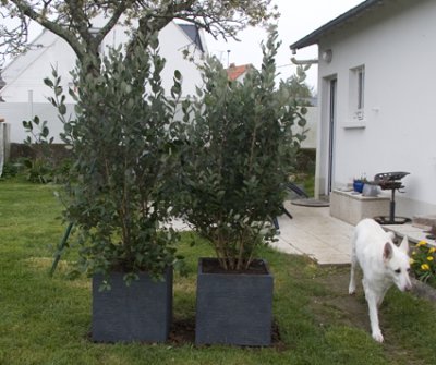 2 arbustes dans les pots en extérieur.