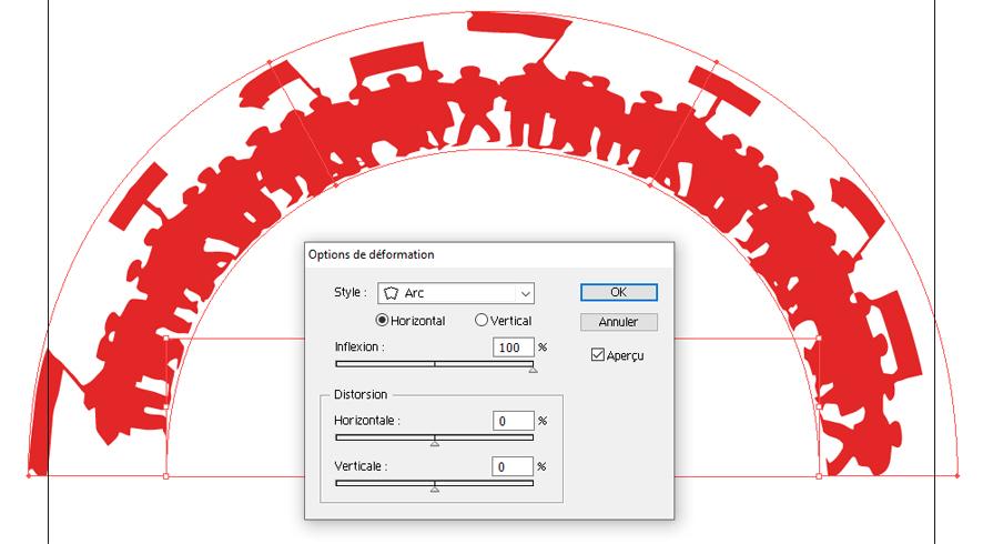 a - Dans la barre de menus : Effet / Déformation / Arc ou Torsion