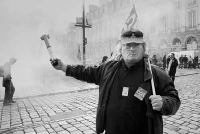 Après les mouvements sociaux je décide de faire une exposition de mes photos sur le mouvement dans trois bistrots de Nantes. Je prends le parti de faire des tirages en noir et blanc. Cette photo fera partie d’un lot de 3 fois 17 photos (17 étant le nombre de jours de grève). Bien-sûr j’offre un tirage à chaque personne y figurant. Daniel me dira « çà c’est une belle photo ; elle est magnifique ! Je vais l’accrocher ».